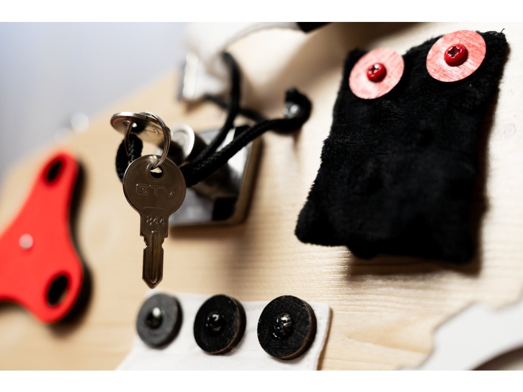 💡 🔔 🔒 Světýlka, zvonky, zámky a další prvky okolního světa jsou součástí této didaktické pomůcky, která podněcuje jemné motorické dovednosti, logické myšlení a koordinaci pohybu.