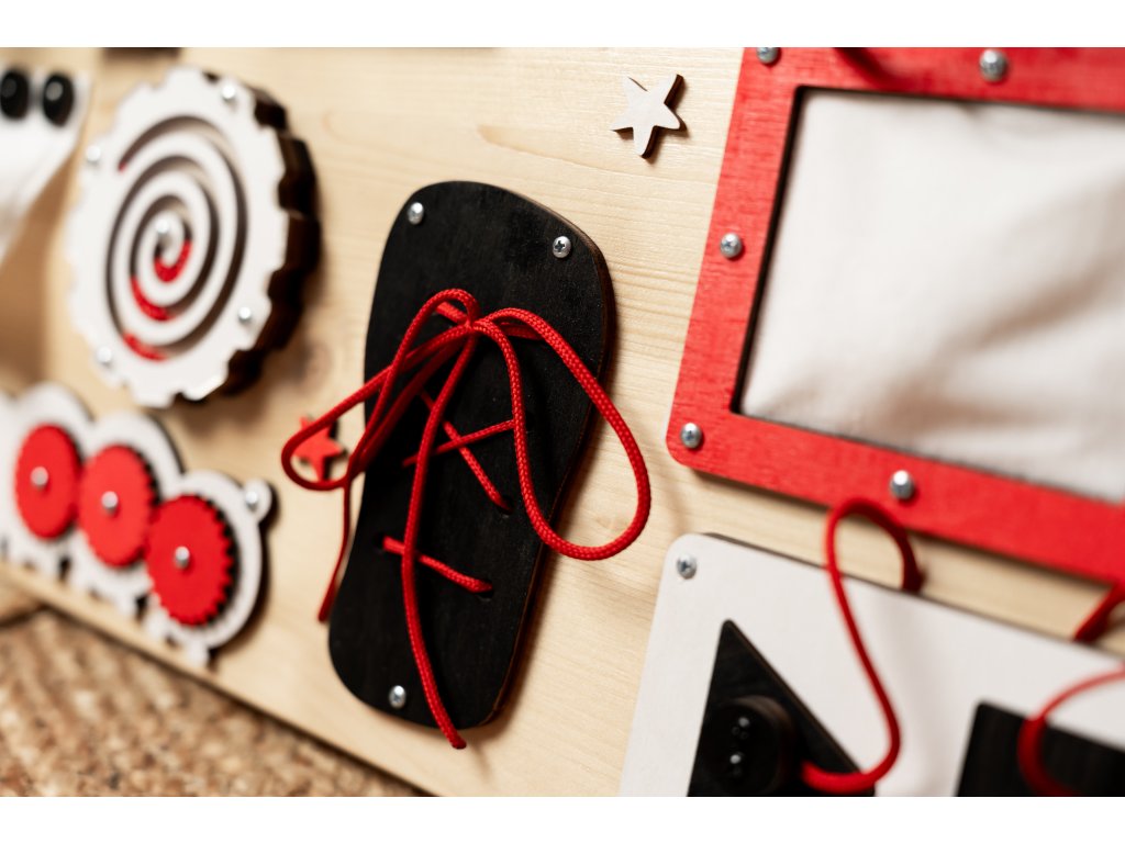 - Rozvoj dovedností: Každý okamžik strávený s naším activityboardem přináší vašim dětem možnost rozvíjet jejich jemné motorické dovednosti, vnímání barev a koordinaci pohybu.