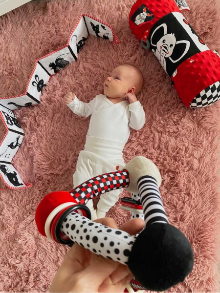 Tip na hračku pro 2 měsíční miminko - kontrastní muchláčci.