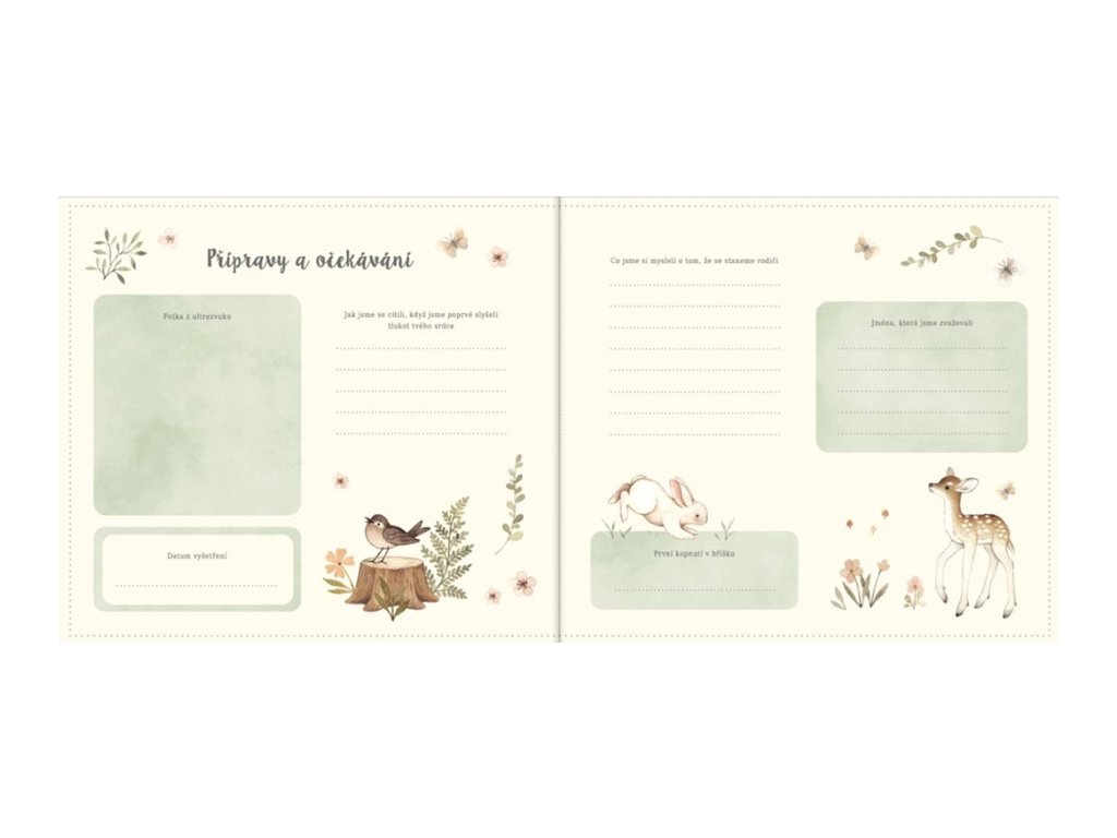 Vytvořte výjimečnou památku na první rok vašeho děťátka v této nádherně ilustrované knížce. Díky částem, kam můžete zapsat důležitá data, vzpomínky a milníky, přidat fotografie či otisky ručiček a nožiček, a dvěma vhodně umístěným obálkám pro uložení cenných suvenýrů a dopisů vašemu děťátku připravíte jedinečnou památku, kterou si v rodině uchováte už navěky.