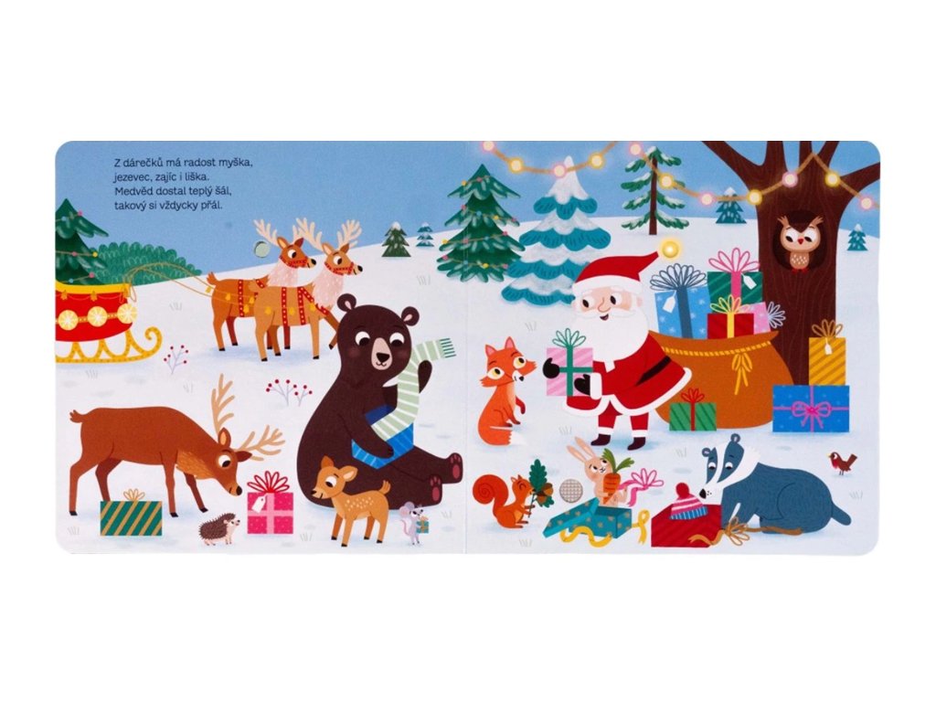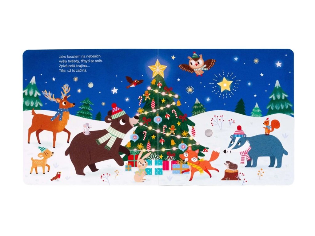 Když se v zasněženém zimním lese přiblíží Štědrý den, zvířátka už se začínají těšit na Vánoce. Pozorují hvězdy na obloze, naslouchají cinkotu zvonečků a rozhodnou se ozdobit stromeček. Nadílka už se blíží! Co pěkného si budou přát? Tato vánoční knížka ve verších se zvuky a blikajícími světýlky vám pomůže ponořit se do sváteční atmosféry. Společně s dětmi si předčítejte milé verše, poslouchejte zvuky lesa a užívejte si kouzelná světýlka. Ideální pro předvánoční pohodu a čekání na Ježíška.