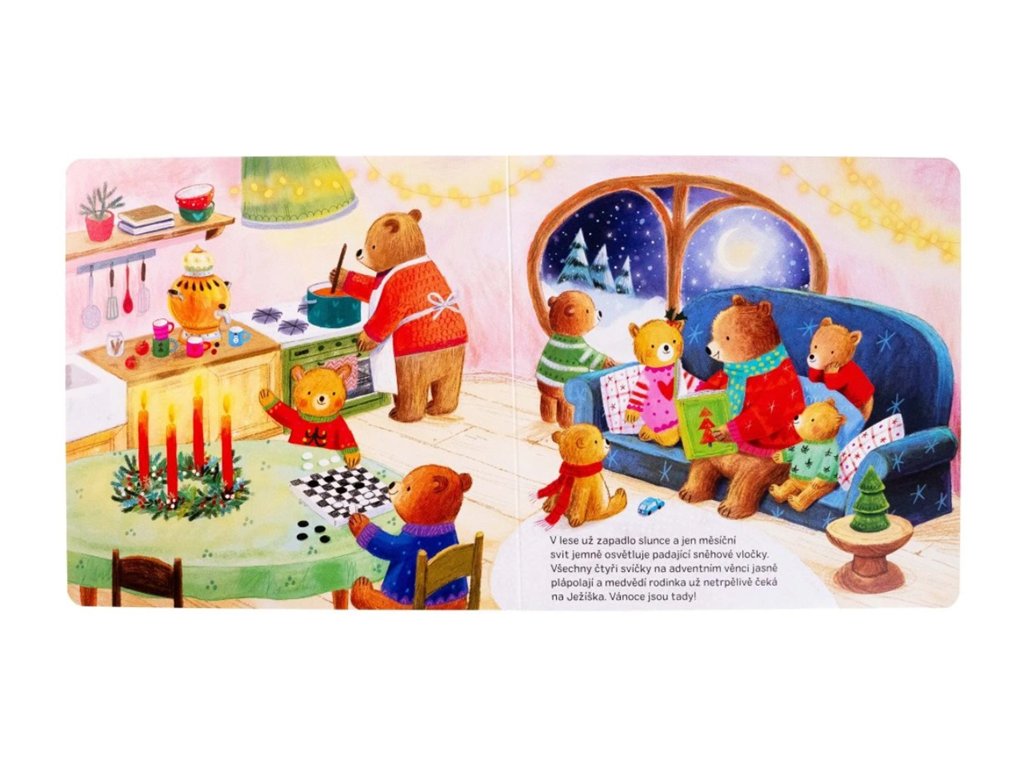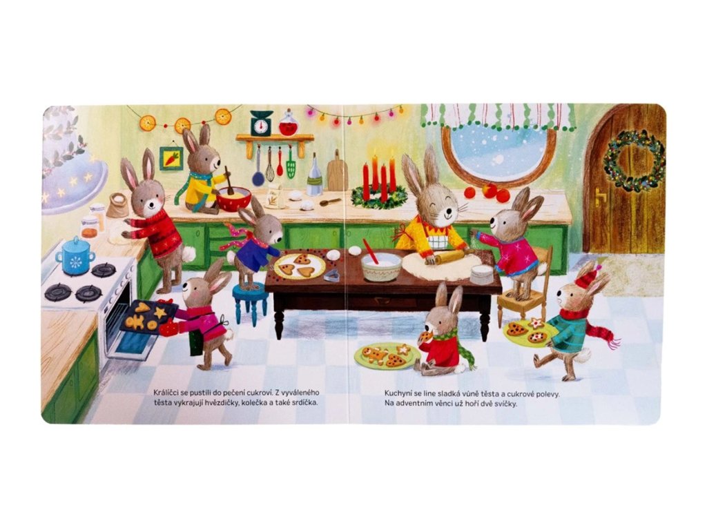 Během adventu mají všichni plno práce. Zvířecí rodinky vyrábějí krásné dekorace, pečou cukroví nebo nacvičují vánoční koledy. Až nastane Štědrý večer, zvířátka ho společné oslaví v zasněženém lese. Nahlédněte k zvířátkům do domečků a nechte se zahřát kouzelnou sváteční atmosférou. Zkraťte si čekání na Ježíška a na konci této vánoční knížky postupně otvírejte 24 adventních okének.