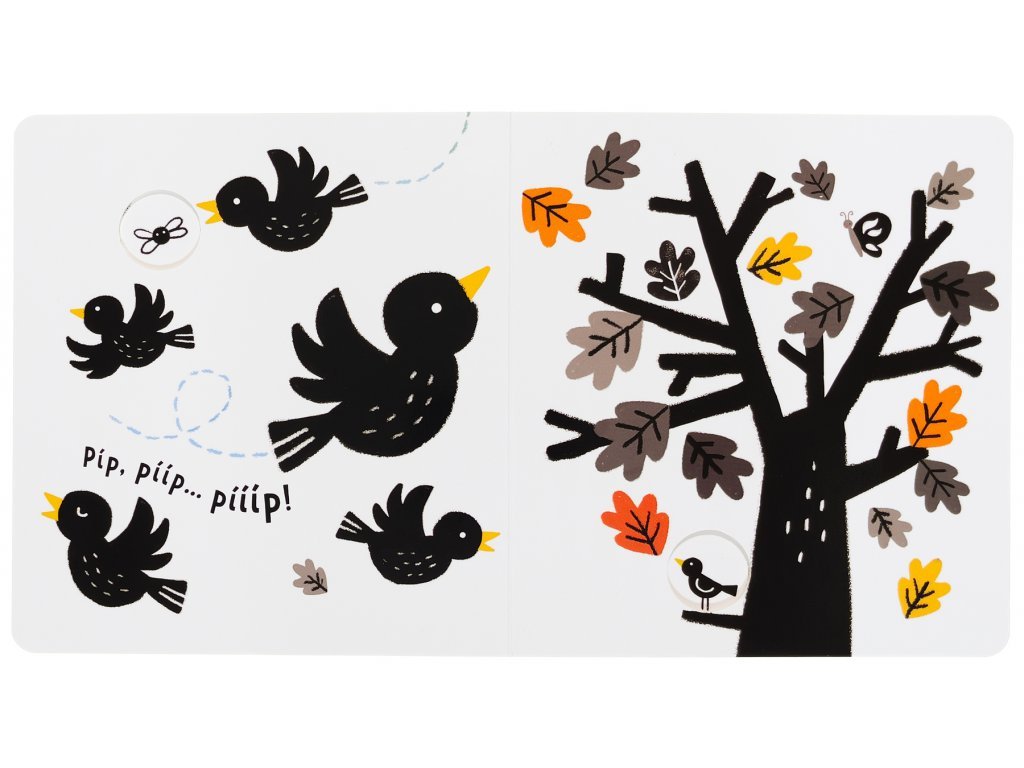 Černobílé vysoce kontrastní leporelo je ideální první knížkou pro vaše miminko. Jednoduché, ale výrazné obrázky stimulují citlivý rozvíjející se zrak dětí a upoutají jejich pozornost. Malý formát a pevné stránky též napomáhají s vývojem motoriky a koordinaci prstíků. Prohlížejte si s vaším děťátkem toto roztomile ilustrované leporelo a vydejte se do města či přírody a poznejte i různá roční období.