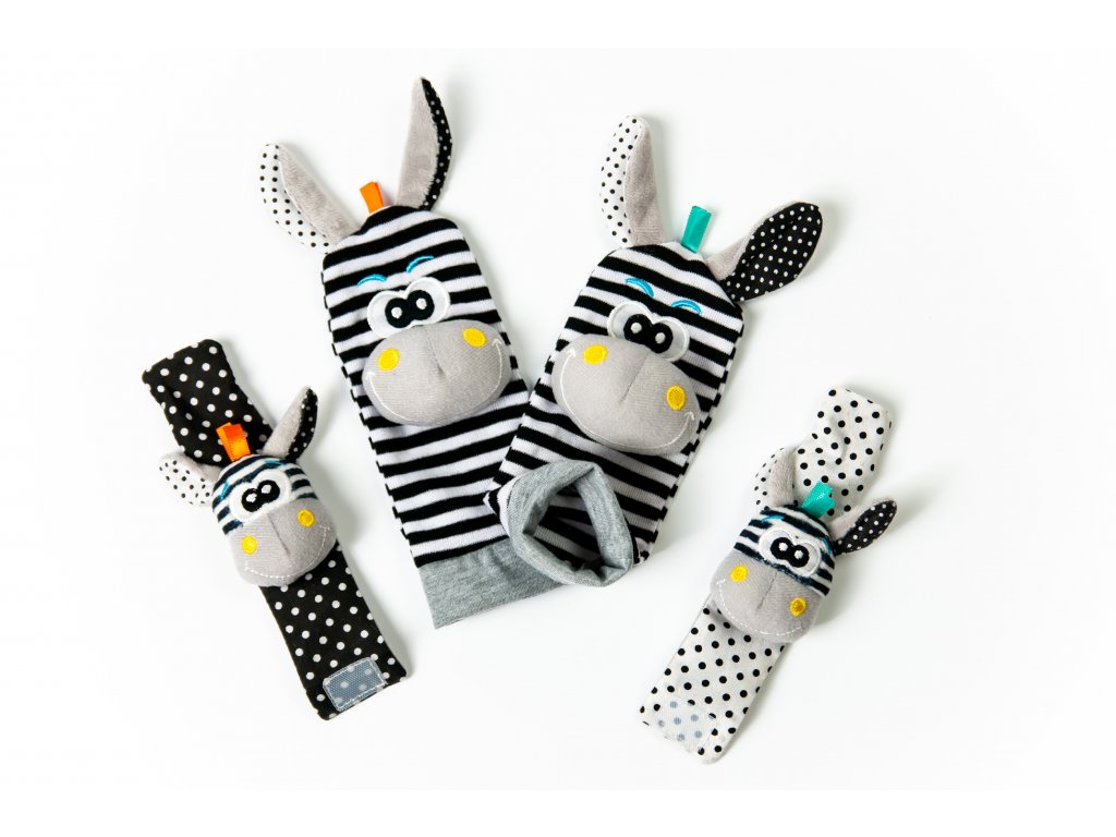 Sada obsahuje: 1 pár ponožek, 1 pár náramků na ručičky