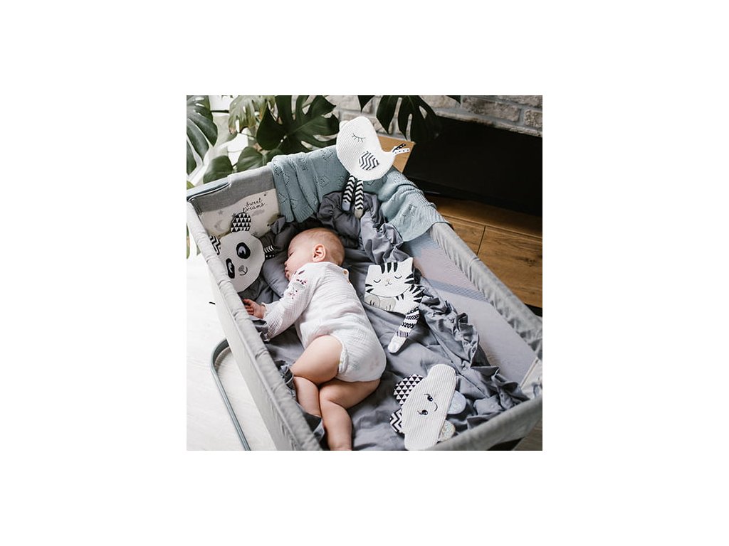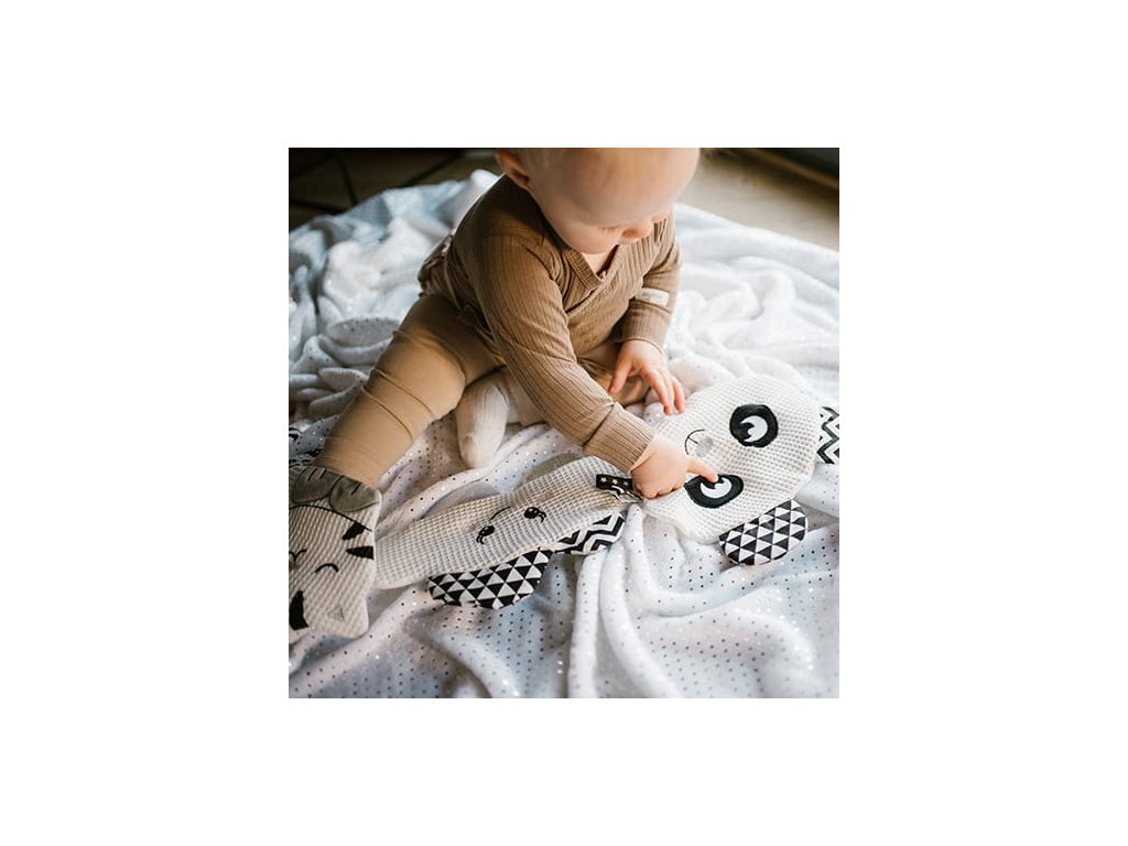 Vyčnívající visačky a pandí uši podporují rozvoj motoriky dítěte. Poskytují další smyslové podněty, které rozvíjejí kognitivní schopnosti batolete.