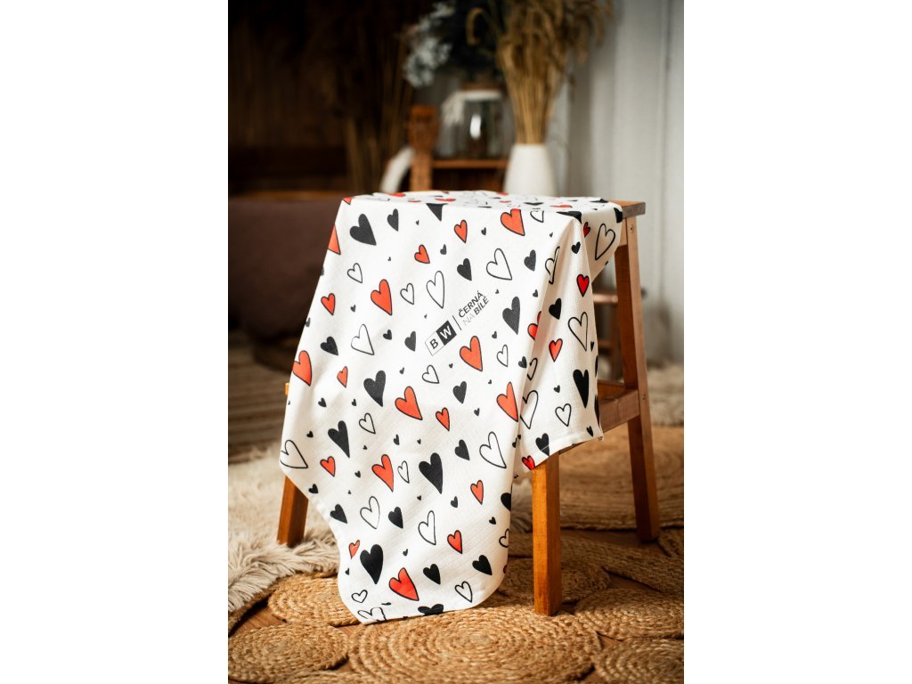 2. JAKOST Kontrastní mušelínová plena - SRDÍČKA