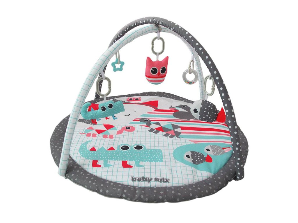 Zavěšené hračky: chrastítka, pískací hračky. Hrazdičky se dají odepnout, stejně tak jako hračky. Příjemný a měkký materiál umožňuje pohodlné ležení na bříšku nebo zádech a umožňuje svobodu pohybu Vašeho dítěte.