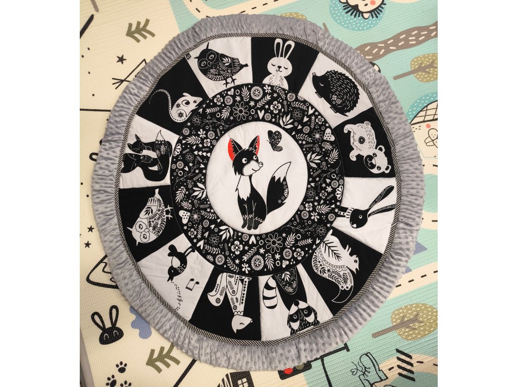 Vysoce kontrastní kulatá deka LIŠKA ŠEDÁ