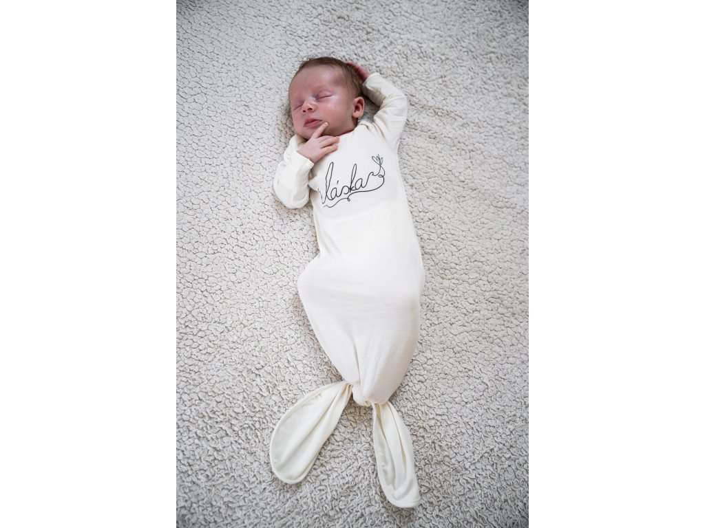 Naše kojenecká řada je šita z látky, která se vyrábí v Itálii. Navrženo a ušito je oblečení v České republice.
