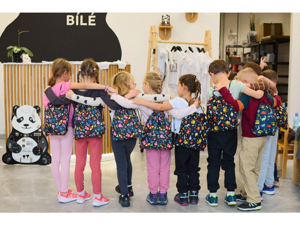 Pak jsou tady naše ručně šité vaky, které jsme navrhli ve velikosti, která je ideální pro malé školkáčky i školáky.